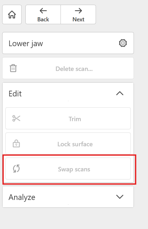 Det er enkelt å bytte om underkjeve og overkjeve skan hvis man har skannet en kjeve i feil steg.